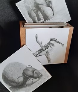 Living in Africa gives one many opportunities to explore the abundant wildlife that graces our many grasslands, wetlands, thorn-veld and ocean shores. My journey with pencil art was a natural progression from a love of photography as I found myself attracted to capturing the details of creation. The incredible persistence of a dung-beetle as it moves its ball of dung across a landscape, the baleful stare of a buffalo, the comical meerkats as they skitter around a termite mound – so many facets of life, unique and intricate in their environments.